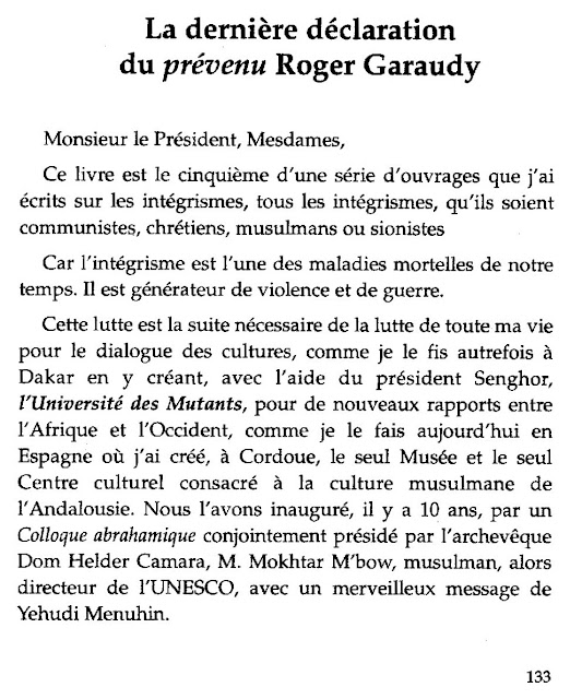 - Dernière déclaration de Roger Garaudy au premier procès des "Mythes fondateurs de la politique israélienne"